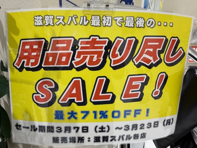 3月7日(土)~3月23日(月)まで用品が最大71%OFFの売り尽くしセールを開催いたします。草津店にございます用品展示コーナー他、特価用品ございますので、この機会に是非いかがでしょうか![]()
