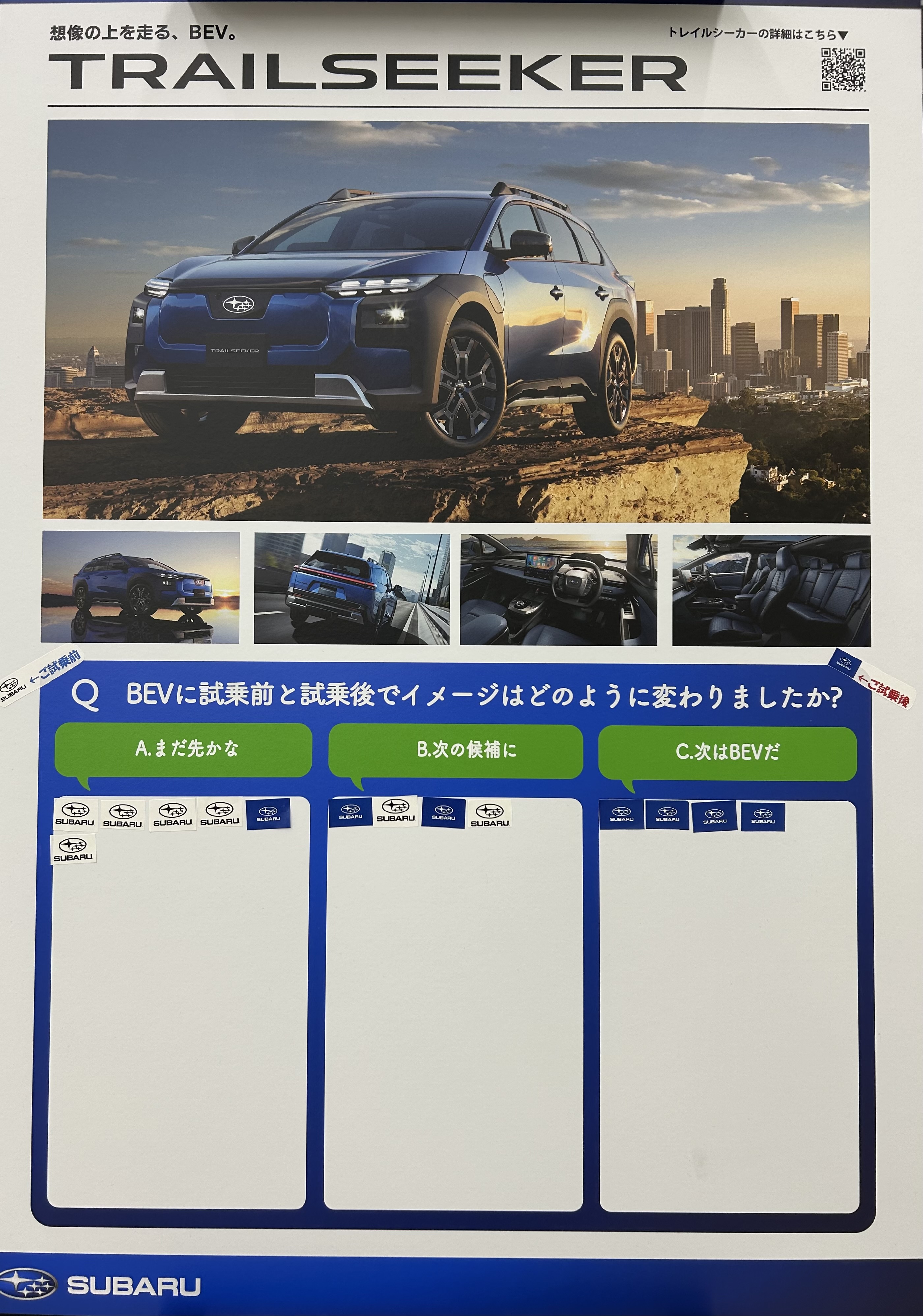 試乗前の最初のイメージがどうだったか、そして、試乗後にどんな印象に変わったかを、あてはまる項目にシールを貼ってください!