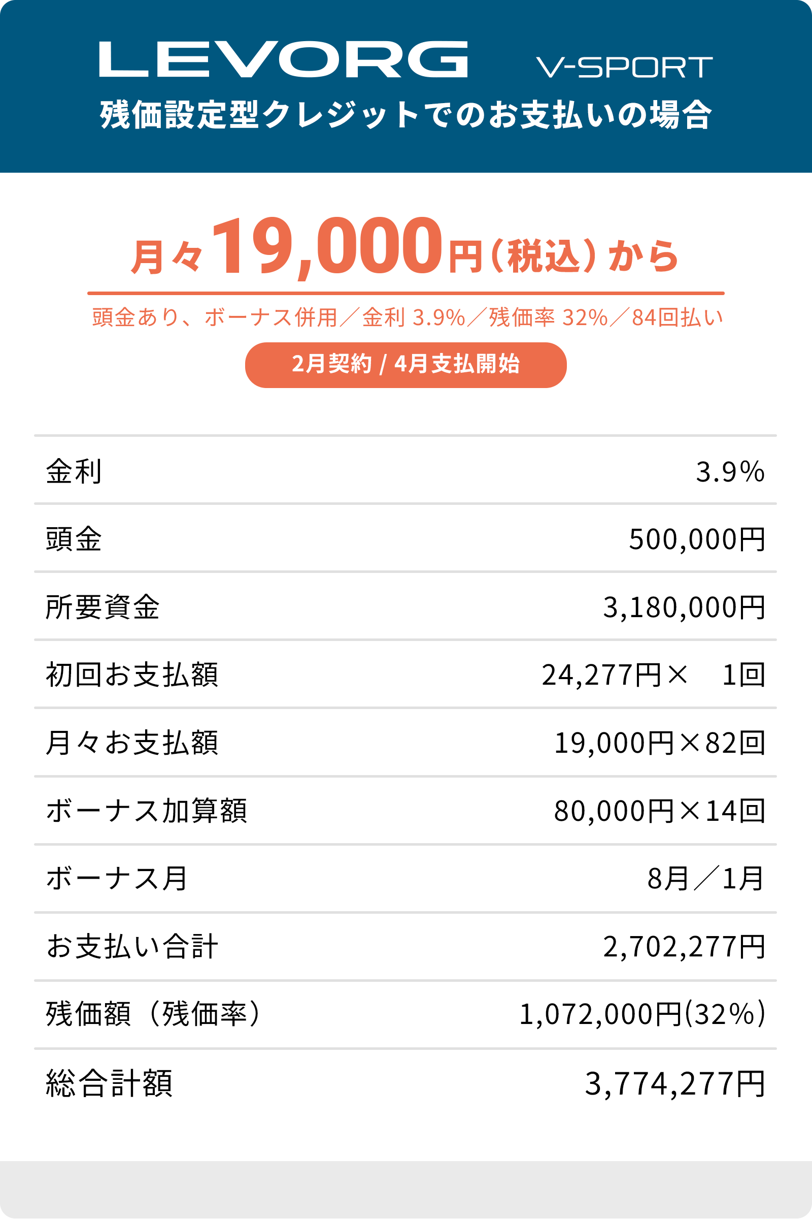 LEVORG V-SPORTの詳細 最先端の運転支援と多彩な装備が魅力のモデルに、さらに上質でスポーティなアイテムをプラスした特別な一台。