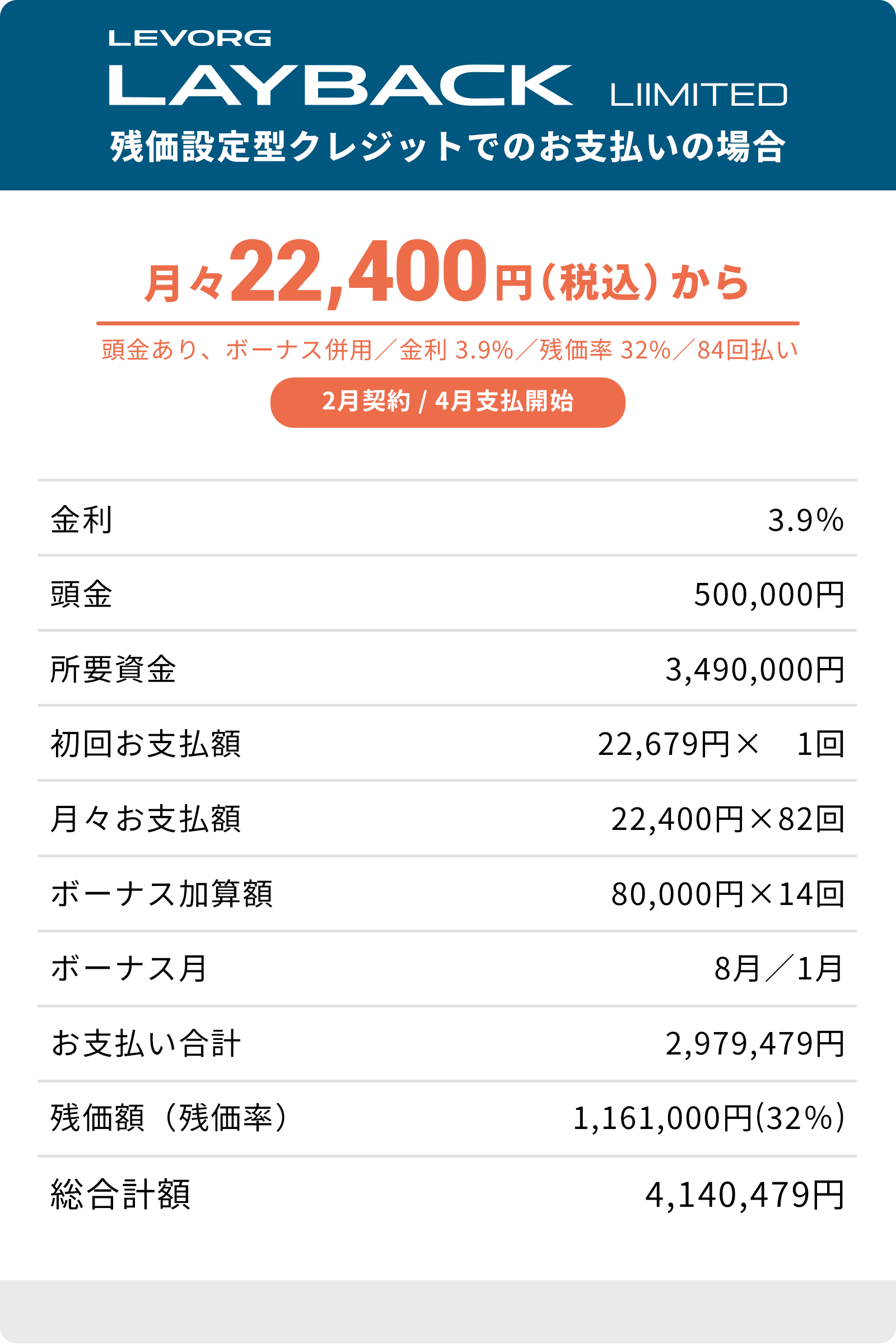 LEVORG LAYBACK LIMITEDの詳細 ワゴンの走りとSUVの安心感を融合したクロスオーバー。AWD、1.8Lターボを備え、街乗り・アウトドアも快適